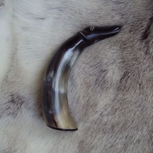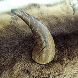 Ceremonial Brass Top Drinking Horn With Iron Stand